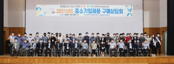 한국수력원자력 새울원자력본부는 29일 새울본부 사택 실내체육관에서 사회적 거리두기를 준수한 가운데 ‘2021년도 중소기업 우수제품 구매상담회’를 개최했다.