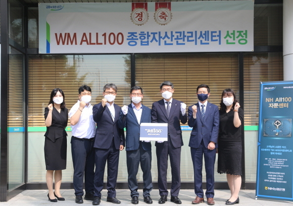 NH농협은행 경남영업본부는 30일 창원시지부에서 WM 특화점포의 공식 명칭 ‘NH All100 종합자산관리센터’ 도입에 따른 경남 1호점 현판식을 진행했다고 밝혔다.