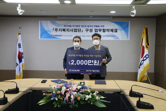 한국전력공사 부산울산본부는 30일 본부 3층 경영상황실에서 취약계층 주거환경 개선과 저소득층 일자리 창출을 위해 부산지역자활센터협회와 ‘주거복지사업단’ 구성을 위한 MOU를 체결했다.