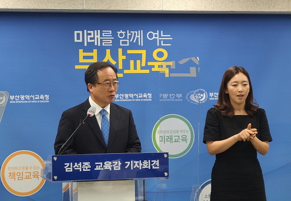 김석준 부산시교육감이 취임 3주년을 맞아 1일 오전 11시 부산시교육청 브리핑실에서 기자회견을 열고 그의 남은 임기 내 ‘미래교육 전환 기반 마련’에 집중하겠다는 뜻을 밝혔다.