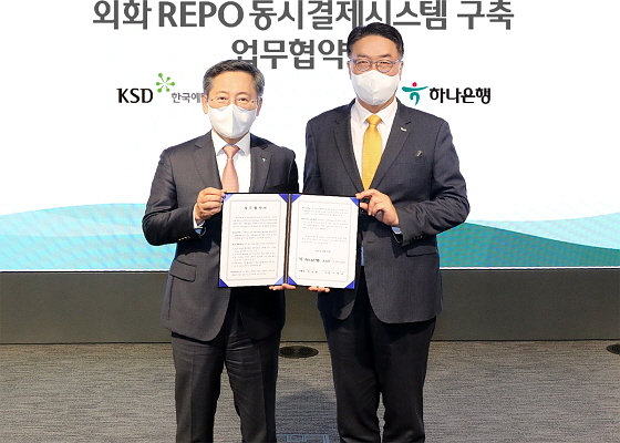 협약을 통해 예탁결제원의 Repo 결제시스템과 하나은행의 외화결제시스템을 연계해 외화 Repo 증권과 대금의 동시결제를 구현한다는 계획이다.