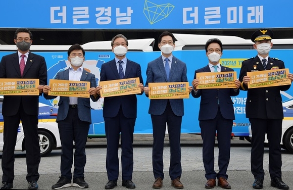 이날 도청에서 열린 비전 선포식에는 김경수 도지사와 김하용 도의회 의장, 김현태 경남도 자치경찰위원장을 비롯한 자치경찰위원, 이문수 경남경찰청장, 그리고 도민 등 20여 명이 참석했다.