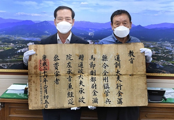 이어 구인모 거창군수는 “거창박물관에는 거창 임진왜란 관련 지역 참모장이었던 모계 문위(1554∼1631), 영호 윤경남(1556∼1614) 선생 유품만 전시돼 있으며, 총사령관인 김면 장군 사료가 없어 그동안 아쉬움이 있었다”며 “이번 기탁자료를 중심으로 전시물을 새롭게 보강하여 국난을 당했을 때 의연히 나라를 지킨 선조들의 정신을 잘 이어가도록 운영하겠다”고 말했다.