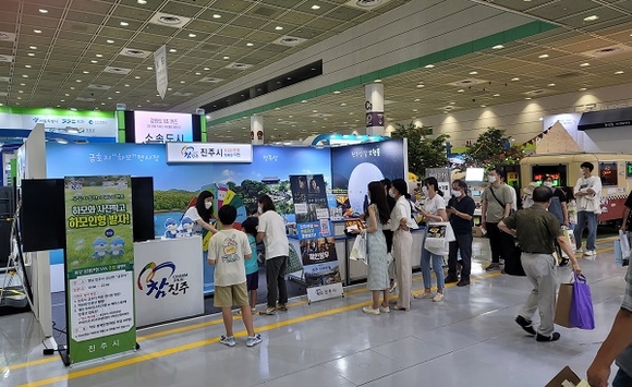 또한 최근 인기를 끌고 있는 금호지 공공미술 전시품인 '하모' 캐릭터 전시 전경을 부스 배경에 담아 진주의 아름다운 풍경과 하모 캐릭터를 홍보하고 하모 봉제 인형 추첨 이벤트를 진행하며 방문객들의 참여를 유도해 큰 호응을 얻었다.