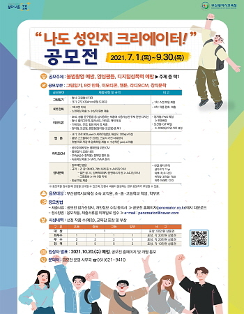 신청은 시교육청 홈페이지 내 ‘성인식개선’ 게시판 또는 ‘나도 성인지 크리에이터’ 공모전 공식 홈페이지에서 신청서를 내려받아 작성한 뒤 응모작과 함께 관계자 이메일로 제출하면 된다.