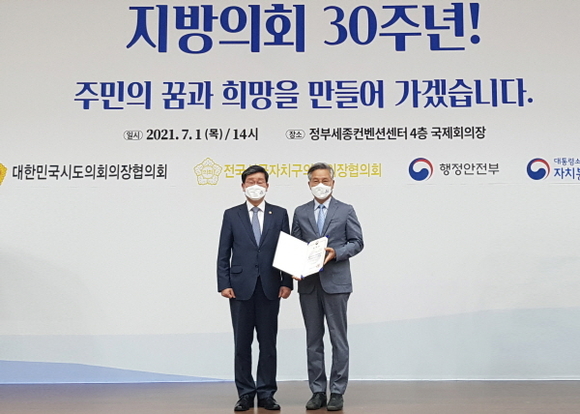 한편, 이번 기념식은 지난 30년간의 지방의회의 발자취를 되돌아보고자 마련됐다. 광역・기초의회의장, 행정안전부 장관, 지방의회 및 유관기관 관계자 등 90여 명이 참석한 가운데 기념영상 상영, 의정발전 유공자 시상, 기념사 축사, 협의회 공식명칭 변경 선포와 기념 세리머니 순으로 진행됐다.
