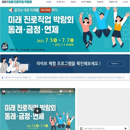 한편 이번 온라인 박람회는 동래교육지원청이 주최하고 동래구·연제구·금정구교육지원센터가 주관하며 주 참여 대상은 관내 중학생 6000여명이다.