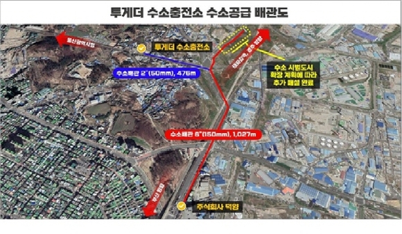 이 사업은 기존 수소 차량(튜브 트레일러)으로 수소를 공급하던 방식을 수소공급 배관으로 전환, 수소 이송량과 충전소 처리능력을 증가시키는 동시에 운송비용을 절감하는 것으로 대형 차량 이동으로 인한 도로 파손이나 사고 방지 등 효과도 기대할 수 있다.
