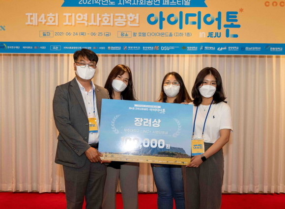 경남대학교 문화콘텐츠학과는 지난달 24일부터 25일까지 양일간 제주 일원 및 칼 호텔 다이아몬드홀에서 열린 ‘제4회 지역사회공헌 아이디어톤’에서 장려상을 수상했다.