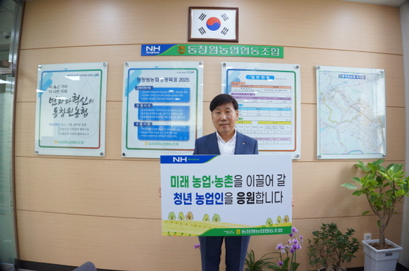 동창원농협 황성보 조합장(농협중앙회 이사)이 청년 농업인 육성 릴레이 응원 캠페인에 동참해 청년농업인들에게 응원의 메시지를 전달했다.