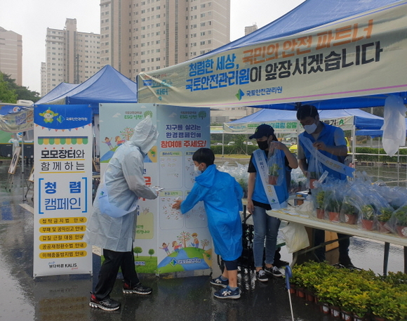 관리원은 이날 행사장을 방문한 주민들에게 ‘청렴한 세상, 국민의 파트너 국토안전관리원이 앞장서겠습니다’라는 슬로건과 함께 청렴마스크 등을 나눠주며 청탁금지법, 부패·공익신고, 신고자 보호·보상제도 등 반부패 청렴문화 확산 관련 정책과 제도를 안내하는 리플릿을 배포했다.