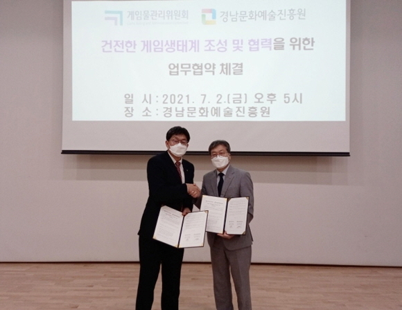 경남문화예술진흥원은 지난 2일 합천 청사에서 게임물관리위원회와 업무협약을 체결했다.