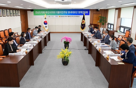 경남도의회 더불어민주당 원내대표단은 5일 도의회에서 부산시의회 민주당 원내대표단과 정책간담회를 가졌다.