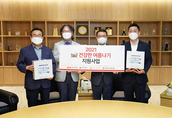 BNK부산은행이 초복(10일)을 앞두고 6일 오전 본점에서 부산사회복지공동모금회, 부산노인복지관협회, 부산종합사회복지관협회와 함께 ‘건강한 여름나기 보양식 전달식’을 열었다고 밝혔다.