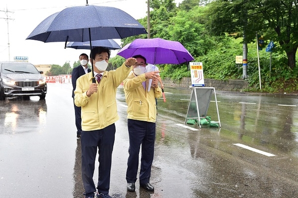조규일 진주시장은 6일 오전 집중호우로 도로가 침수돼 교통이 통제된 집현면 죽산삼거리~평촌삼거리 지역 현장점검에 나섰다.