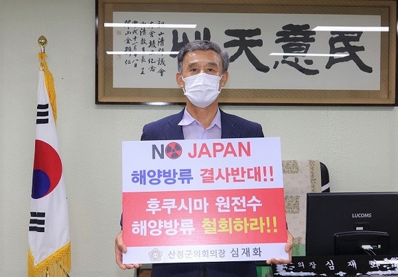 심재화 산청군의회 의장 6일 일본 후쿠시마 원전 오염수 해양방류 결정을 규탄하는 릴레이 챌린지에 동참해 일본 정부의 결정철회를 촉구했다.