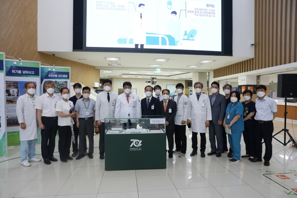 또 중앙로비 입구에는 병원 개원 70주년을 맞아 1900여 명의 교직원이 직접 쓴 성경필사본 제본 내용을 전시하는 행사도 진행됐다.