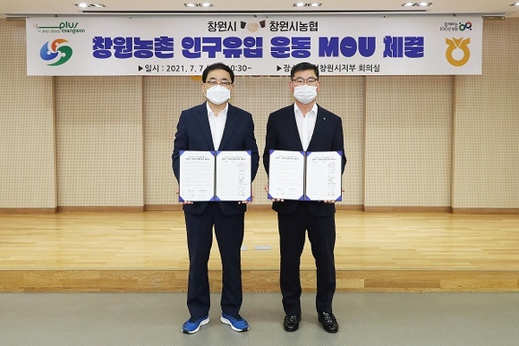 경남 창원시는 7일 오전 농협창원시지부 회의실에서 농촌인구 유입 및 귀농 귀촌인의 안정적인 정착을 위해 농협창원시지부, 관내 전체 농·축협과 창원농촌 인구유입 상호 협력을 위한 협약을 체결했다.
