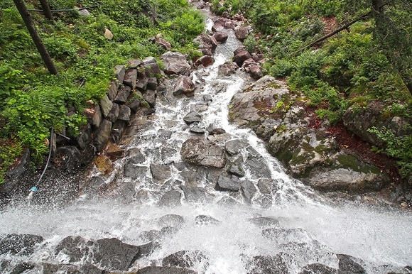 8일 오전 장마전선이 잠시 주춤한 사이 무더위가 찾아왔다. 경남 산청군 금서면 동의보감촌 내 ‘무릉정’ 정자에서 바라본 무릉계곡이 지난밤 내린 비로 시원한 장관을 연출하고 있다. (사진=산청군 제공)