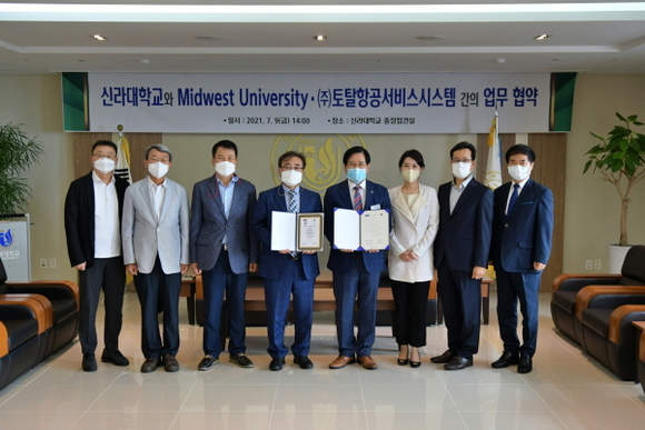 신라대학교가 미국 미드웨스트대학과 항공교육훈련을 위한 업무협약을 체결했다고 12일 밝혔다.