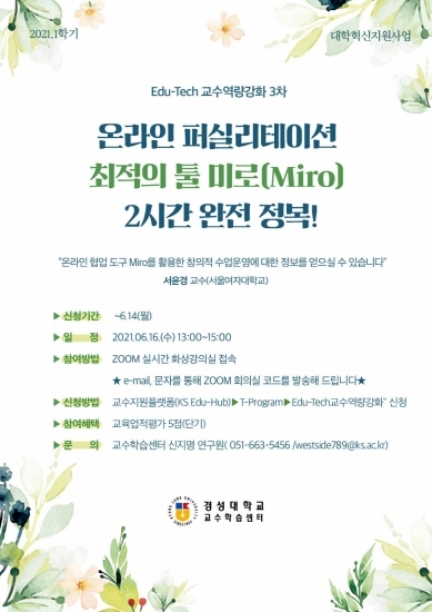 경성대학교 교수학습센터는 경성대 교원을 대상으로 언택트 시대의 다양한 온라인 플랫폼 및 쌍방향 학습도구 활용 교수법을 주제로 ‘Edu-Tech 교수역량강화’ 특강을 시리즈로 기획, 운영했다.