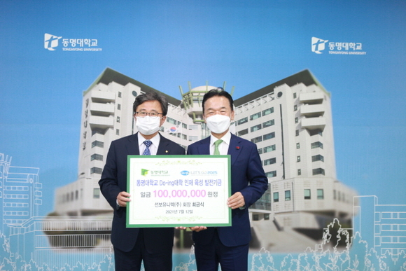 동명대학교는 최금식 선보유니텍(주) 회장이 12일 두잉(Do-ing)인재 육성 발전기금 1억원을 쾌척했다고 밝혔다.