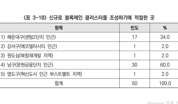 블록체인 관련 업체들이 ‘부산 블록체인 클러스터’ 조성 최적 입지로 ‘문현금융단지’ 인근을 가장 많이 꼽은 것으로 나타났다.