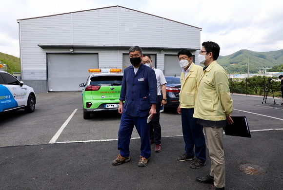 13일 부산 기장군에 위치한 한 음식물 폐기물 처리업체에서 작업하던 인부 1명이 숨지는 사고가 발생한 가운데 오규석 군수가 이날 오전 10시 30분경 해당 시설을 긴급 방문해 점검하고 있다.