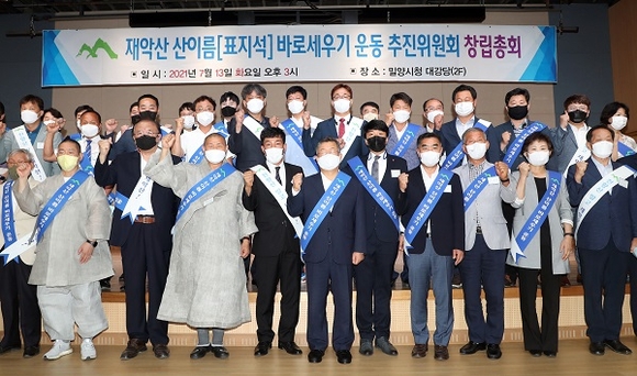 지난 13일 (가칭)재악산 산이름(표지석) 바로세우기 운동 추진위원회 발기인 대회 및 창립총회가 밀양시청 대강당에서 코로나19 방역수칙을 준수한 가운데 진행됐다.