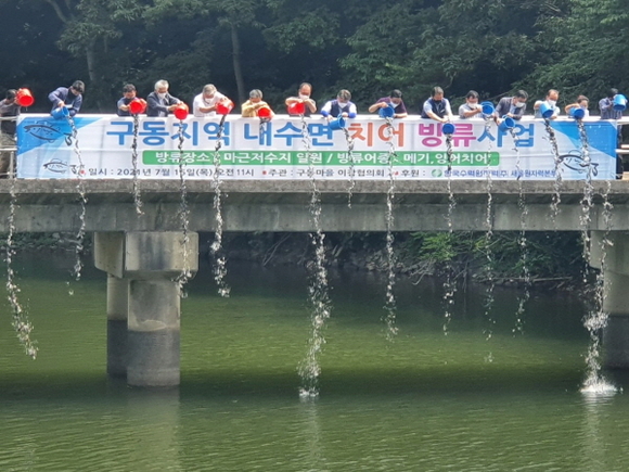 한국수력원자력 새울원자력본부는 15일 서생면 마근 저수지에서 이상민 본부장, 이상배 구동이장단협의회장, 구동지역 주민 20여 명이 참석한 가운데 메기 치어 등 방류행사를 시행했다.