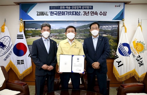 이번 평가에서 김해시는 특색 있는 가야역사문화 사업 추진과 코로나19 상황에서도 시민의 문화욕구 해소에 기여할 수 있는 다양한 사업들을 발굴·시행한 공로를 인정받아 우수상을 수상했으며, 이번 수상으로 시는 3년 연속 수상의 영광을 안았다.