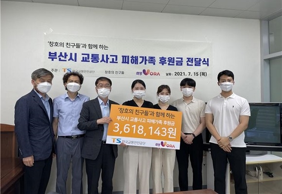 한국교통안전공단 부산본부가 지난 15일 고(故) 윤창호씨의 친구들로부터 ‘자동차 사고 피해가족 기부금’을 기탁받았다고 16일 밝혔다.