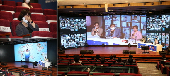 300석 규모의 본점 대강당에는 충분한 거리두기를 위해 80여 명의 부점장만 현장 참석하고, 나머지 참석자들은 소관 영업점 등에서 노트북과 태블릿PC를 활용해 비대면으로 참석했다. 특히, 강당 참석자들은 전날 코로나 자가진단키트를 통해 음성을 확인한 후 입장했으며, 행사장에서도 체온 측정, 손 소독, 마스크 착용, 좌석 간 띄어 앉기 등 방역수칙을 철저하게 준수했다.