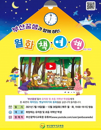 프로그램은 유치원, 초등학생 선생님들로 구성된 ‘부산 꿈샘’들이 대상 학생에 매주 월요일과 화요일 오후 7시에 유튜브로 총 46편의 동화를 들려주는 방식으로 진행된다. 운영 기간은 오늘(19일)부터 오는 12월 28일까지다.