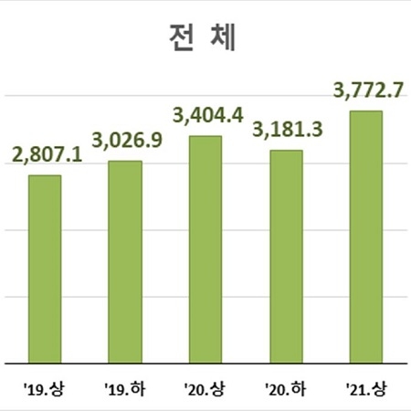 상반기 채권결제대금은 3492조 4000억원으로 직전반기 대비 17.8%(526조 7000억원) 늘어났으며 전년동기 대비 9.0%(288조 9000억원) 늘어났다.
