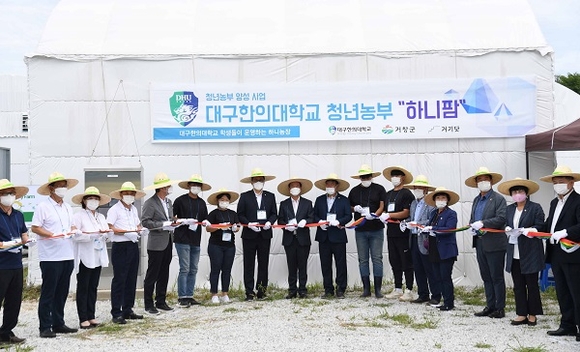경남 거창군과 대구한의대학교의 제1호 귀농청년농부 '하니팜'이 지난 19일 청년 경영실습 임대농장에서 출범식을 가졌다.
