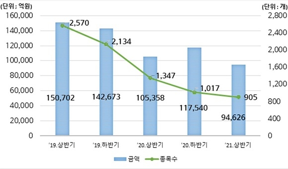 또한 올 상반기 DLS 상환금액은 9조 9222억원으로 전년동기대비 44.1%(7조 8255억원), 직전반기대비 32.2%(4조 7208억원) 각각 감소했다.