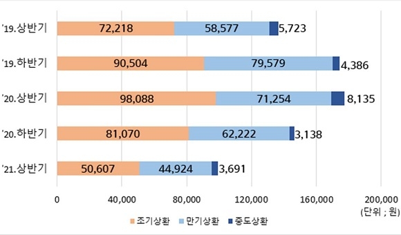 상환 유형별로는 조기상환이 5조 607억원으로 가장 많은 전체의 51.0% 비중을 차지했다. 이어 만기상환이 45.3%(4조 4924억원), 중도상환이 3.7%(3691억원) 비중을 차지했다.