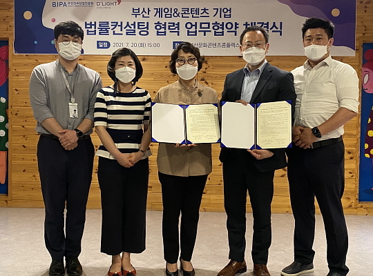 부산정보산업진흥원이 부산지역 게임·콘텐츠 기업을 대상으로 법률자문 등을 지원하기 위해 지난 20일 본원에서 법무법인 디라이트와 MOU를 체결했다고 21일 밝혔다.