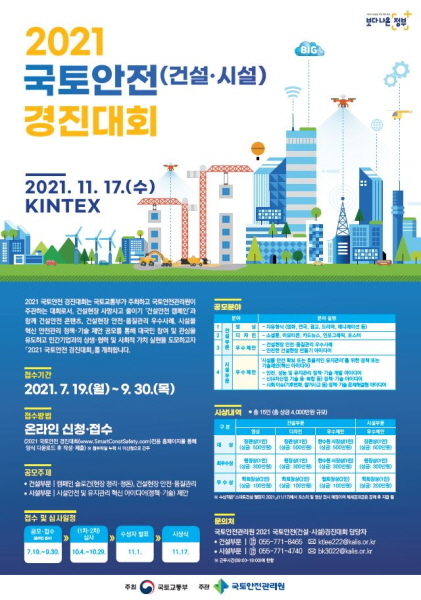 국토안전관리원은 건설·시설 분야의 안전과 관련한 국민의 관심과 참여를 유도하고 민간기업과의 상생·협력을 도모하기 위해 ‘2021 국토안전 경진대회’를 개최한다고 21일 밝혔다.