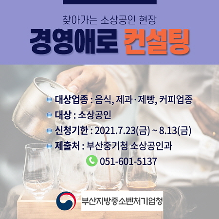 김문환 부산중기청장은 “사업의 방향성을 놓고 고민 중이거나 경영난으로 어려움을 겪는 소상공인께 실질적인 도움이 됐으면 좋겠다”고 전했다.