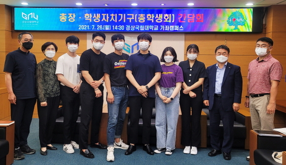 경상국립대학교(GNU)는 지난 26일 오후 가좌캠퍼스 대학본부 접견실에서 ‘총장-학생자치기구(총학생회) 간담회’를 개최했다.