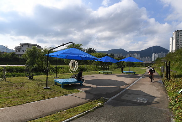 먼저 기장군은 정관읍 병산저수지에서 임랑해수욕장까지 좌광천 14㎞ 전 구간에 대형그늘막 100개, 평상 100개, 그네의자 70여점, 운동기구 30여점을 설치했다.