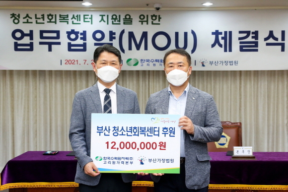 한국수력원자력 고리원자력본부는 28일 부산시 연제구 부산가정법원 종합청사에서 한영표 부산가정법원장, 김준석 고리본부장 등이 참석한 가운데 청소년회복센터 운영 지원을 위한 후원금 전달식을 가졌다.