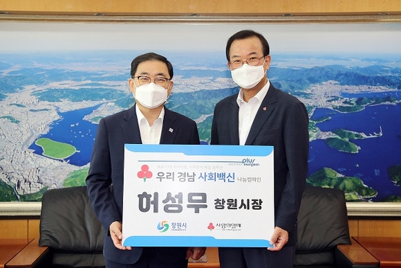 허성무 창원시장은 28일 오전 접견실에서 경남사회복지공동모금회가 추진하고 있는 '우리 경남 사회백신 나눔 캠페인' 기부 릴레이에 '캠페인 4호 기부자'로 동참했다.