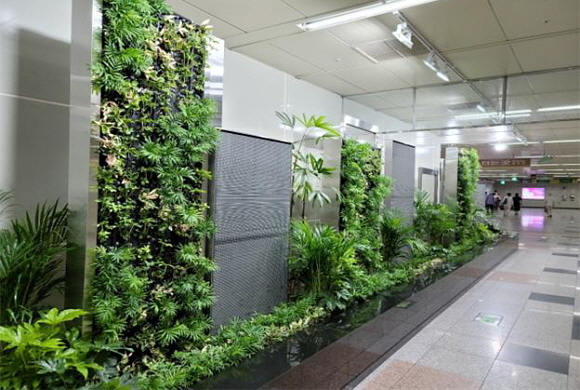 사직역 실내정원은 지난 2005년 3호선 개통 당시 설치됐다가 가동 중단된 ‘아쿠아모늄(인공 수경설비)’에 리노베이션 디자인을 적용해 5종의 미세먼지 저감 식물 520본을 심은 것이다.