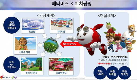 아리모아에 따르면 이번 사업은 중소벤처기업부(중기부) 산하 산업기술진흥원 부산사업평가단의 지원을 받아 지난 2019년부터 진행해 최근 구축을 마친 것이다. 아리모아는 자사 애니메이션 ‘치치핑핑’의 캐릭터와 스테이지, 스토리를 XR 콘텐츠로 구현해 테마파크형 메타버스 플랫폼을 구축한다.