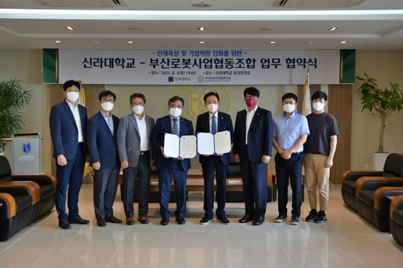 신라대학교가 미래 유망산업인 로봇산업 맞춤형 인재 양성을 위해 부산로봇사업협동조합과 업무협약을 체결했다.
