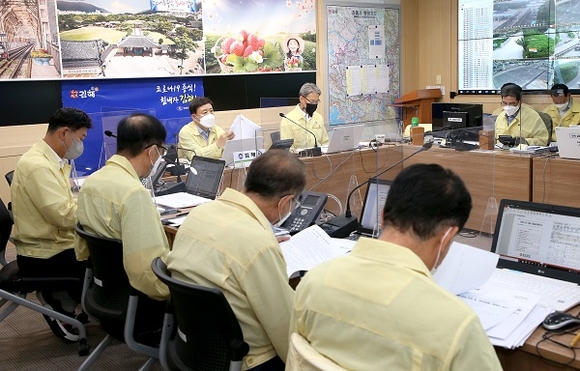 허 시장은 이날 김해시청 재난대책상황실에서 열린 정부·광역·기초자치단체 참여 '코로나19 대응 영상회의' 직후 실·국·소장은 물론 이례적으로 읍·면·동장들을 별도로 소집해 자체 회의를 주재하며 이 같이 강조했다.