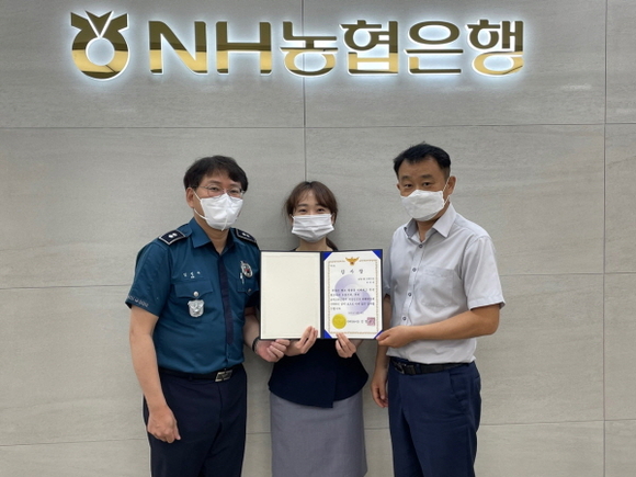 NH농협은행 경남영업본부는 진해지점의 천년송 계장이 보이스피싱 금융사기예방공로로 진해경찰서로부터 감사장을 받았다고 6일 밝혔다. 천 계장은 올해 4월에 입사한 신규직원으로 고객의 소중한 자산을 보호한 것으로 알려졌다.